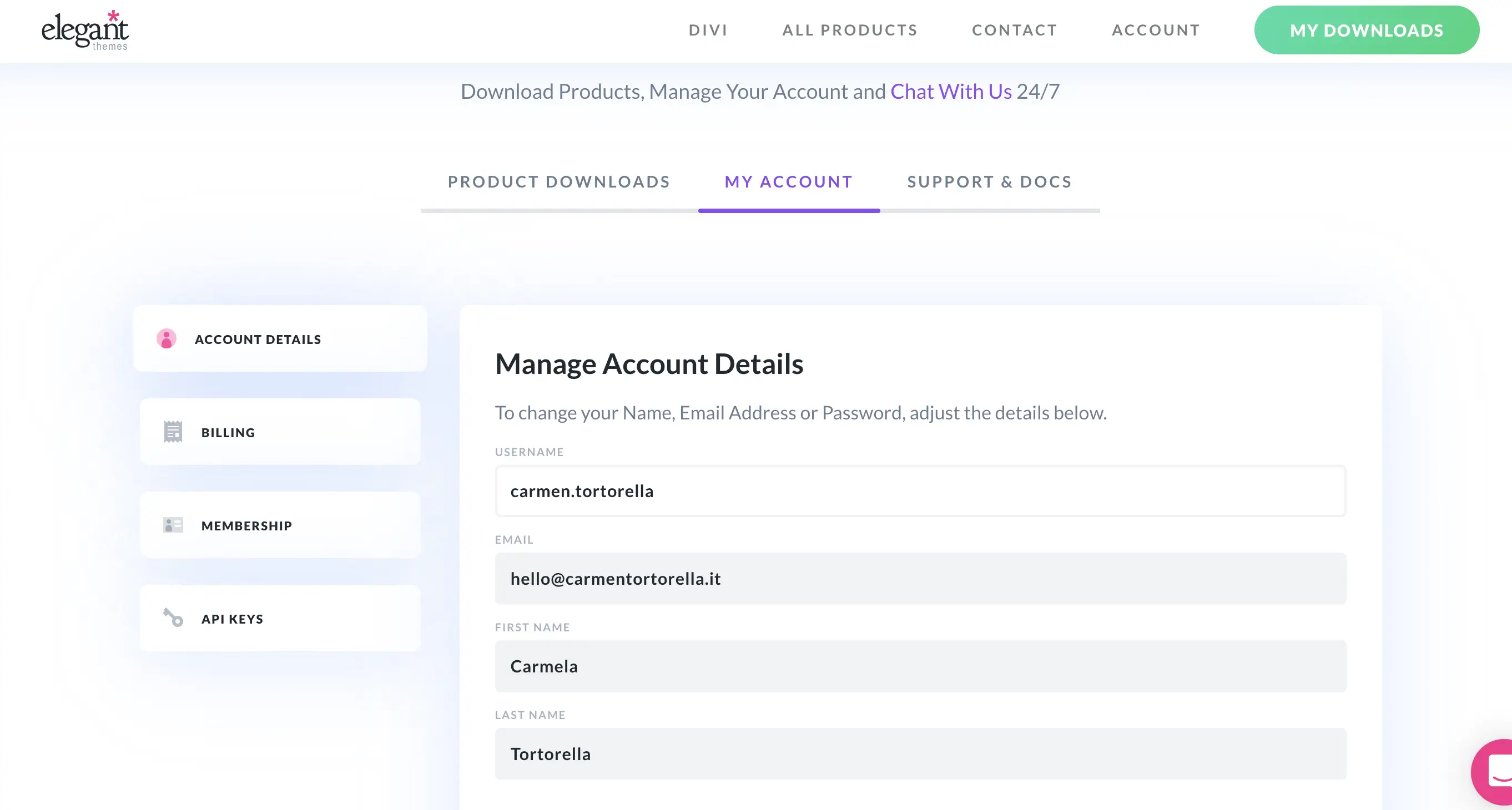 - Accedi alla tua area utente su https://www.elegantthemes.com/members-area/